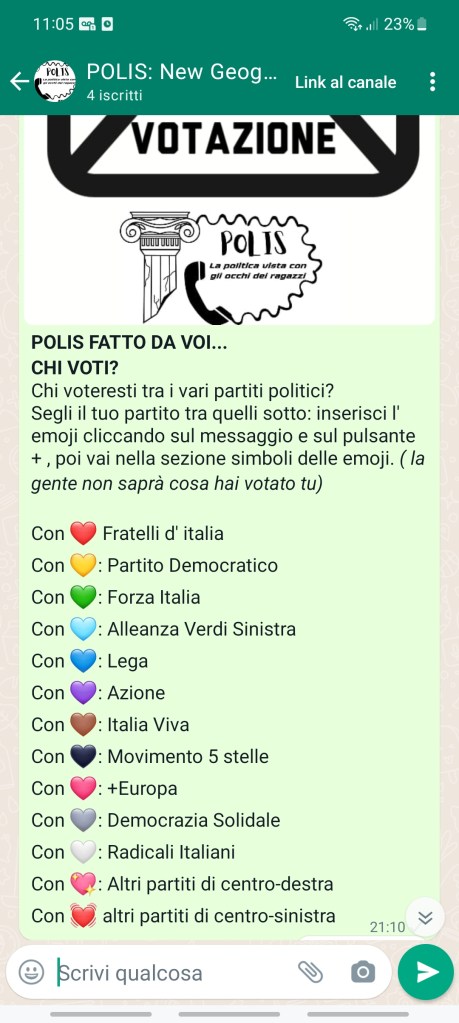 Votate il vostro partito politico preferito sul canale Whatsapp di Polis!